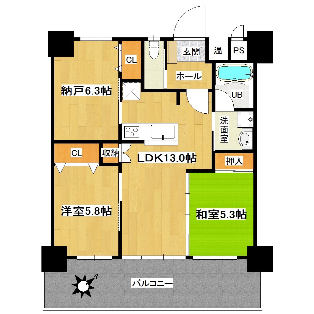 | 間取り | 2SLDK ( 洋5.8 和5.3 SLDK6.3 ※LDK 13帖) |